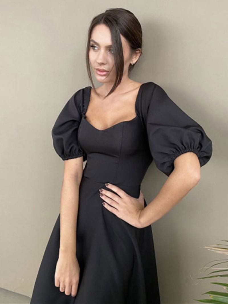 Vestido Midi Feminino Com Gola Bateau Meia Manga Semi Formal Baile Festa