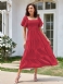 Vestido Midi Feminino Verão Rosa Bateau Gola Plissada Praia