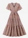 Vestido Retrô Anos 50 Audrey Hepburn Estilo Rosa Floral Estampado Feminino Com Renda Manga Curta Decote Em V Rockabilly