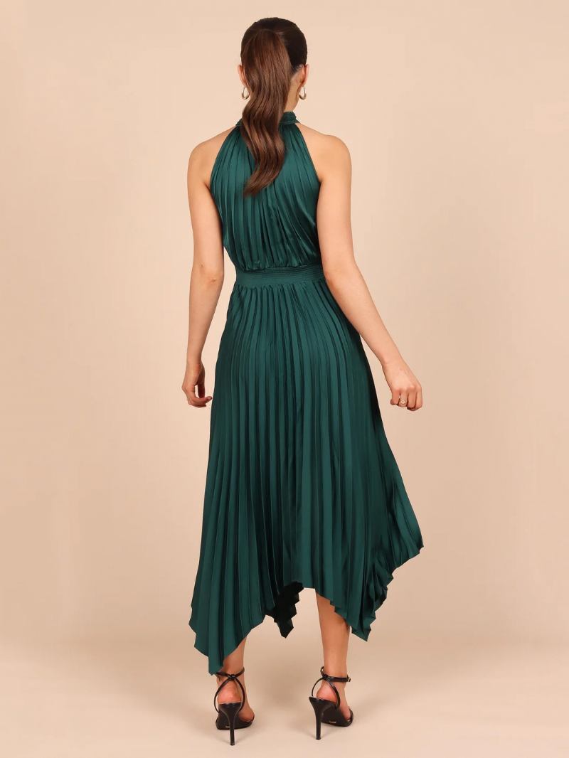 Vestido Verão Feminino Gola Alta Plissado Irregular Rosa Longo Praia