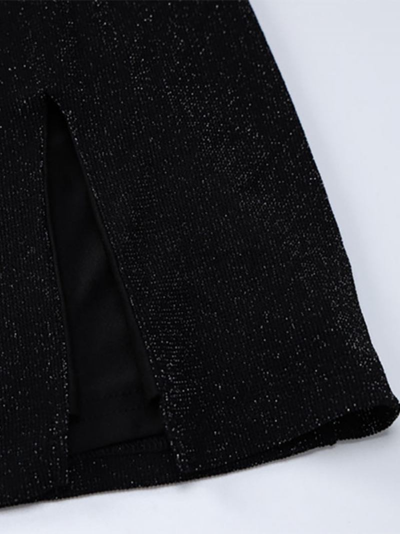Vestidos Bodycon Femininos Aniversário Preto Sem Mangas Frente Dividida Sexy Alças Pescoço Bainha