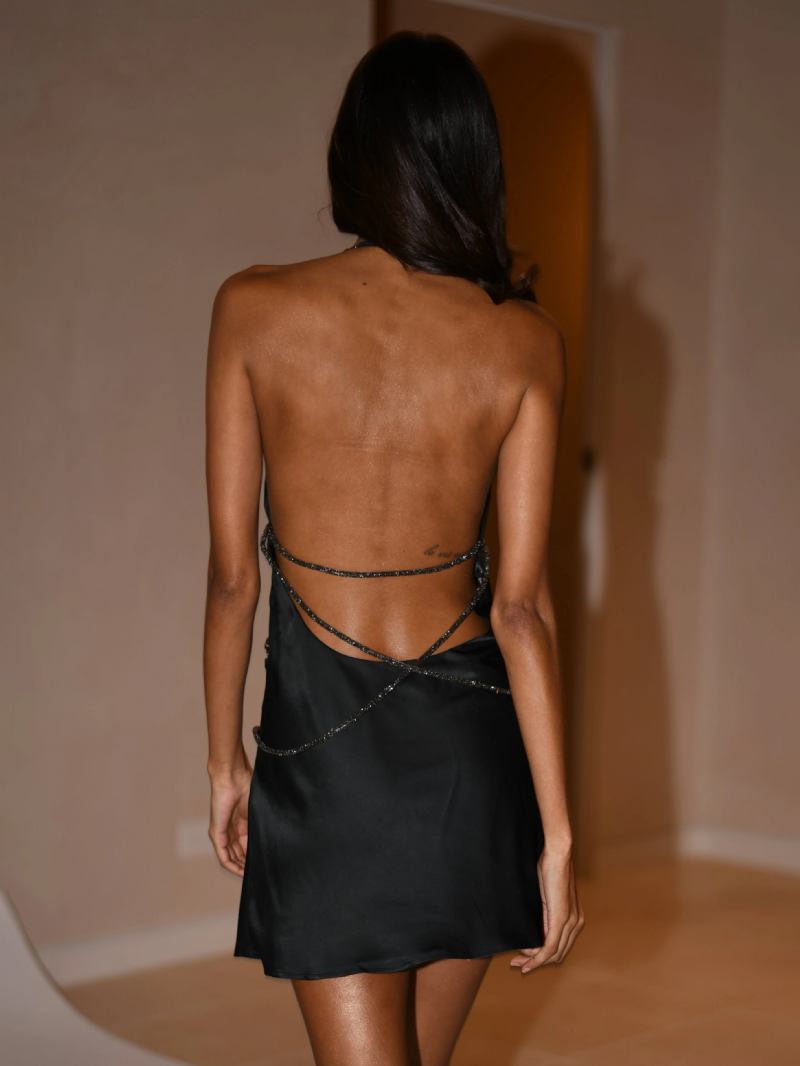Vestidos Bodycon Femininos Champanhe Sem Mangas Correntes Chique Decote Em Camadas Vestido Midi Bainha
