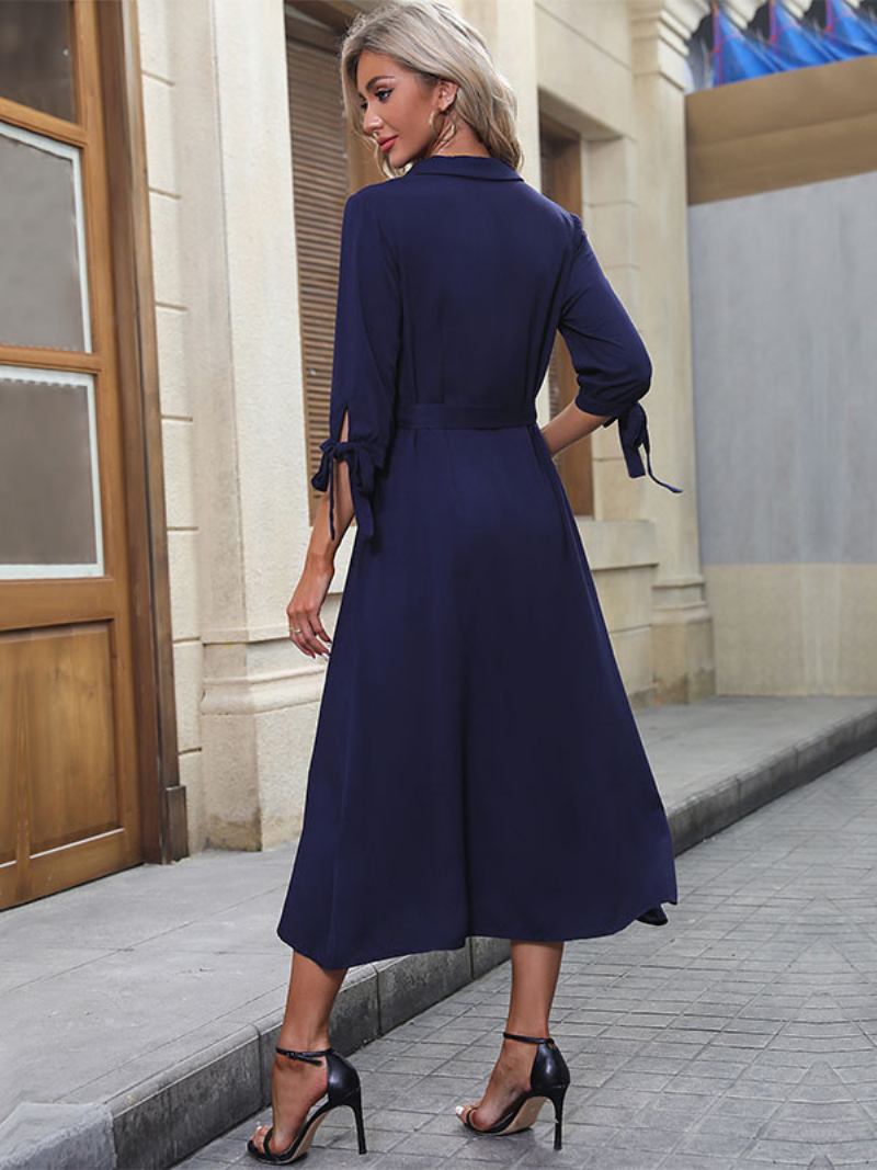 Vestidos Camisa Femininos Com Gola Aberta E Mangas Compridas Midi