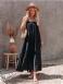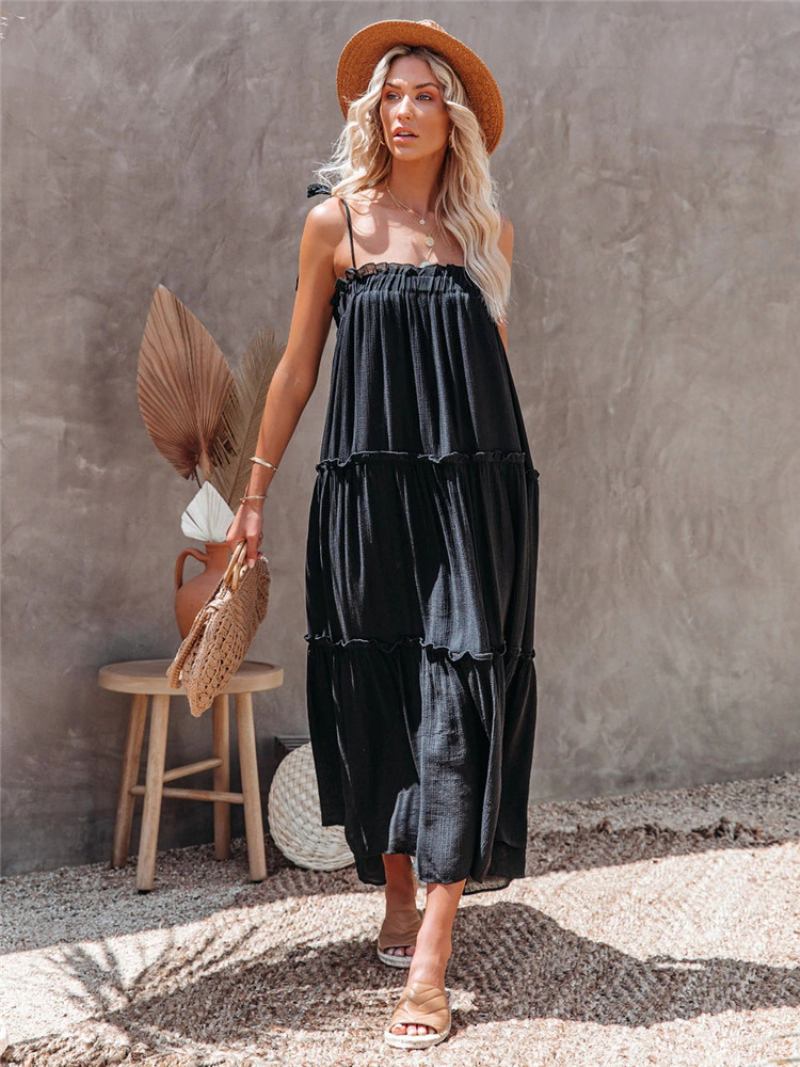 Vestidos Femininos Alças Finas Sem Mangas Casuais Plissados Com Pescoço Vestido Túnica Preto Grande