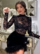 Vestidos Femininos Renda Elástica Casual Com Decote Em Joia E Mangas Compridas