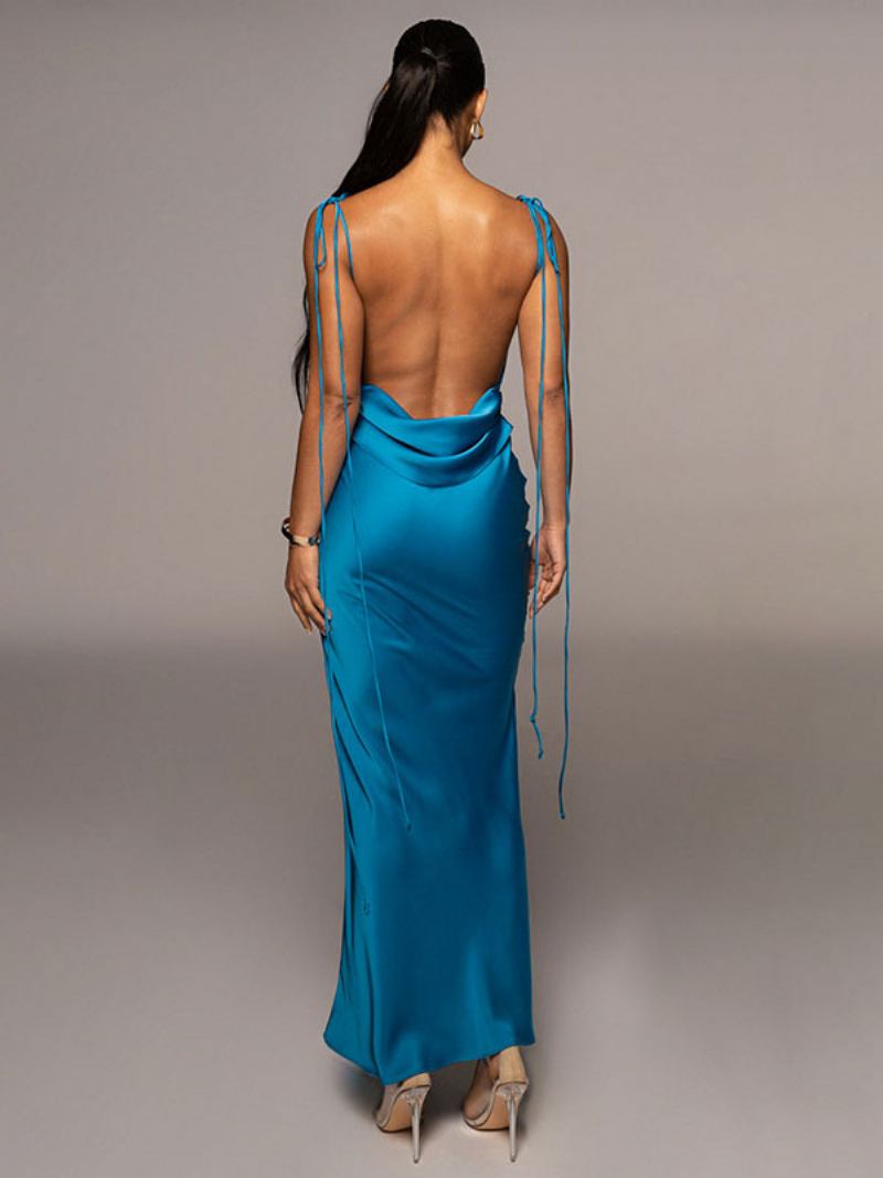 Vestidos Festa Femininos Azul Sem Mangas Costas Semi Formal Vestido Maxi Baile