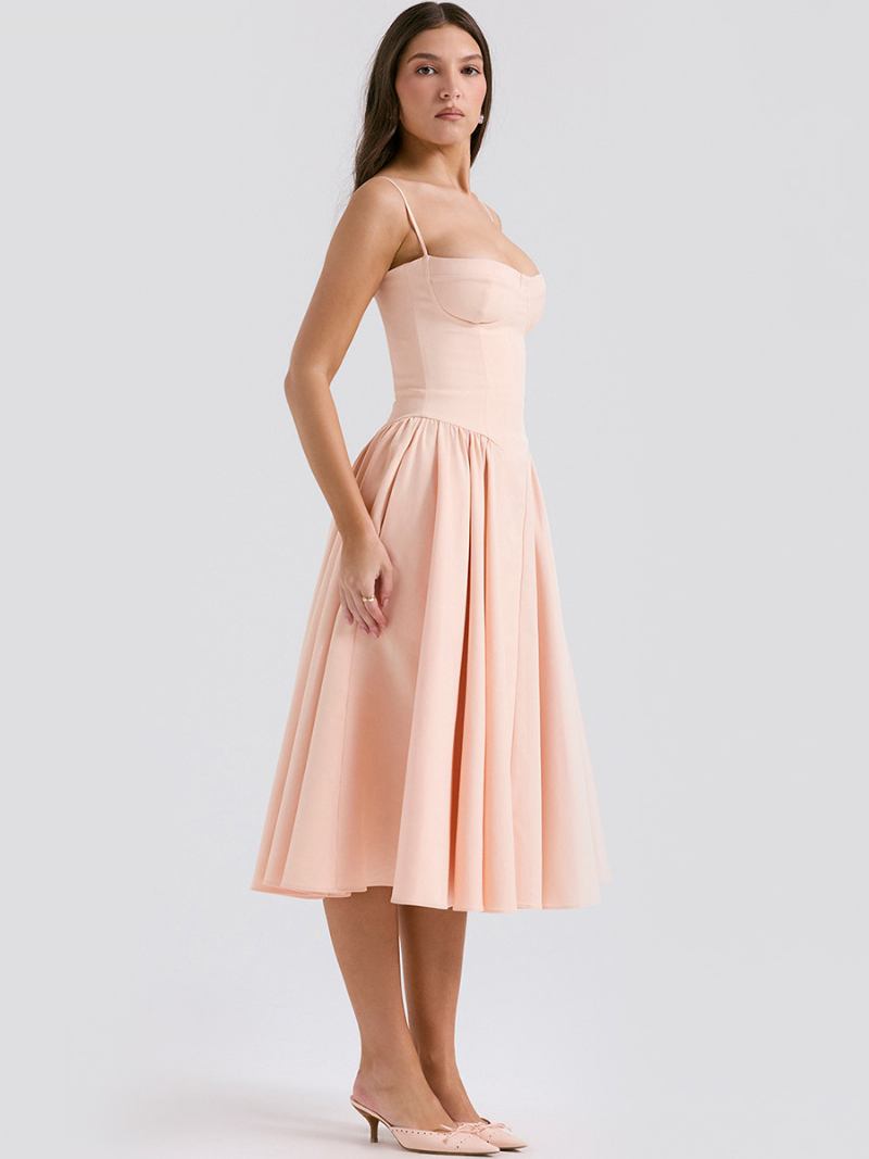 Vestidos Festa Femininos Cáqui Alças Pescoço Plissado Sem Mangas Vestido Semi Formal
