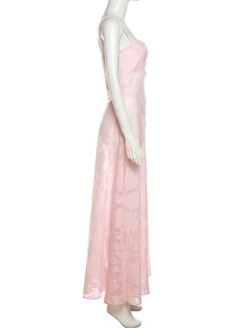 Vestidos Festa Femininos Rosa Alças Pescoço Sem Mangas Estampa Floral Transparente Vestido Semi Formal