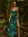 Vestidos Maxi Estampados Femininos Frente Única Renda Decote Em V Sem Mangas Zíper Fenda Lateral Sexy Primavera Vestido Longo