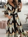 Vestidos Maxi Femininos Mangas Compridas Vermelho Animal Estampado Com Decote Em V Vestido Longo Camadas Renda