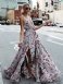 Vestidos Maxi Femininos Sem Mangas Cinza Floral Estampado Com Decote Em V Vestido Até O Chão Renda