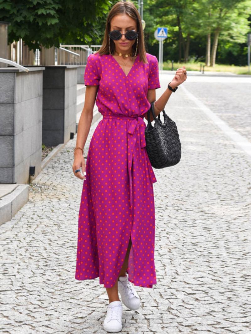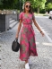 Vestidos Maxi Florais Femininos Estampados Rendas Com Decote Em V Mangas Curtas Fenda Frontal Casual Verão Longo