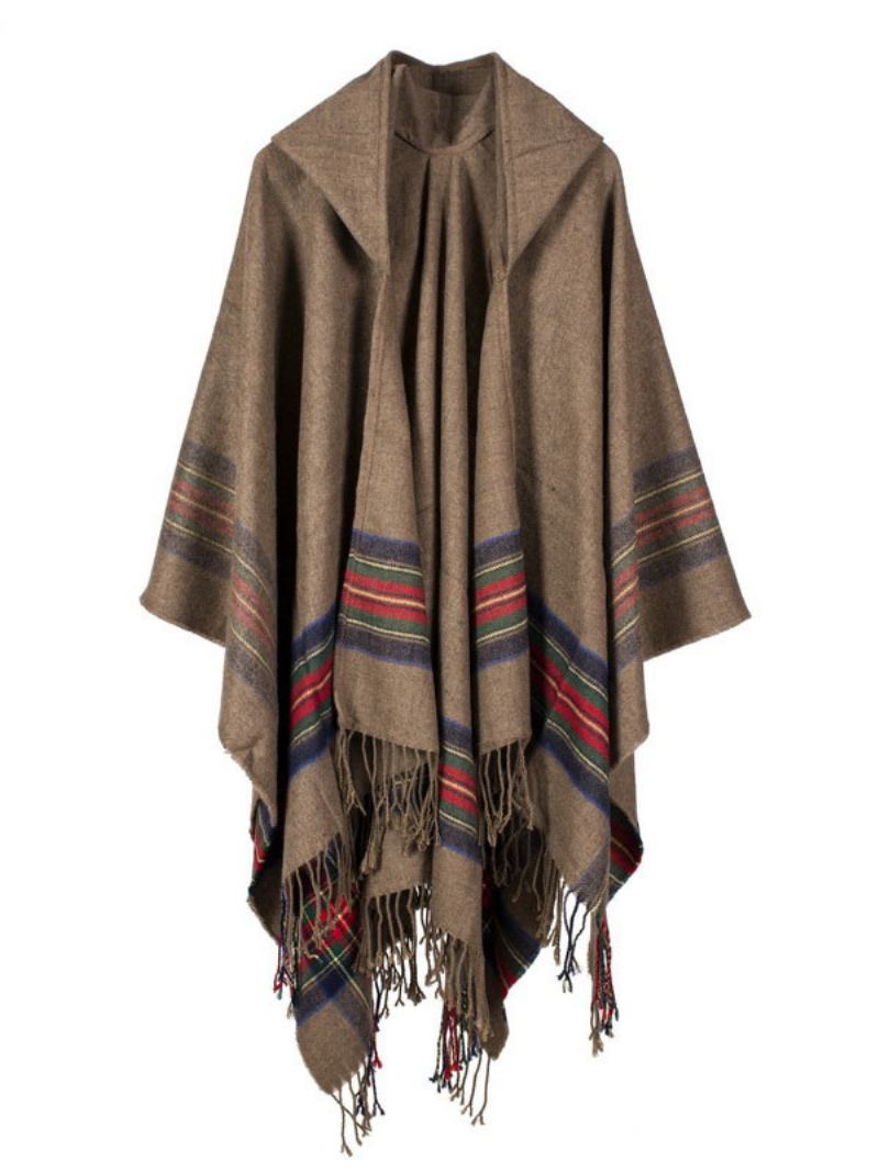 Xaile Wrap Bohemian Com Capuz Franja Poncho Cardigan Capa Para Mulheres